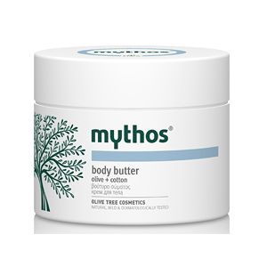 Mythos Body Butter Cotton – 200 ml. Mythos Body butter Olive + cotton er en lækker fugtgivende kropscreme rig på olivenolie, cotton, sheasmør. og vitamin E. Produktet efterlader huden gennem fugtet, blød og frisk. Mild, naturlig og dermatologisk testet. 2 (Læs mere)